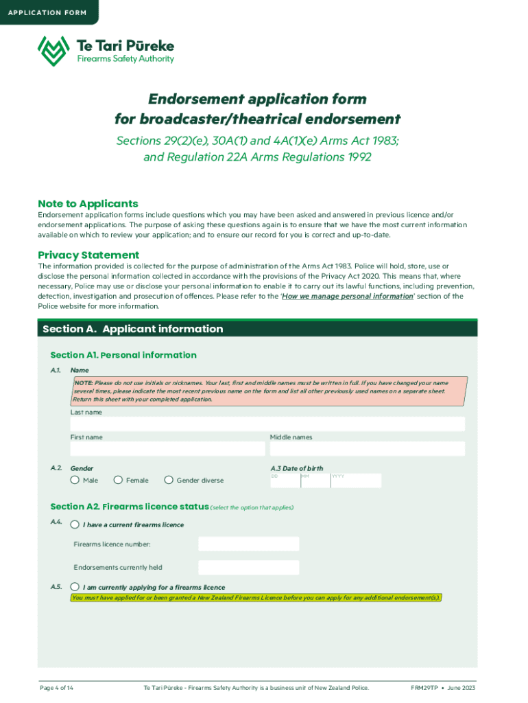 Application Forms application form is for use by all applicants for a broadcaster/theatrical endorsement on a New Zealand