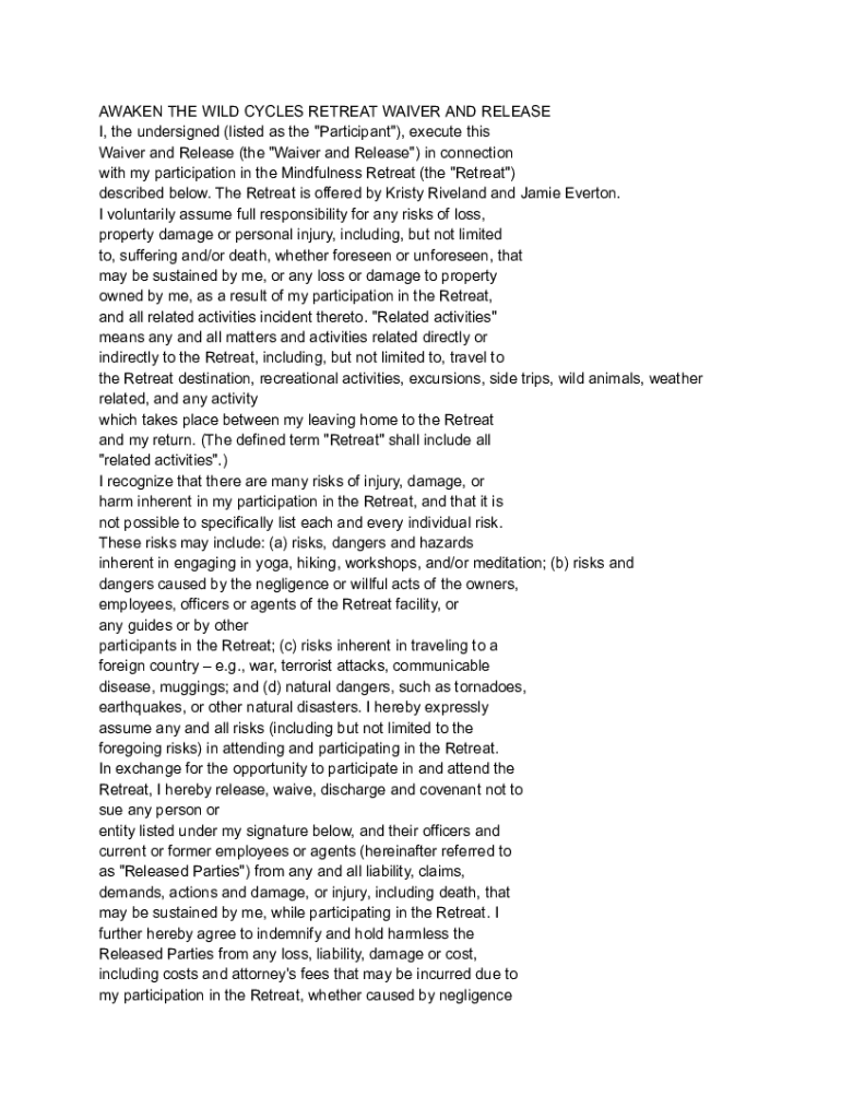 Get the free AWAKEN THE WILD CYCLES RETREAT WAIVER AND RELEASE