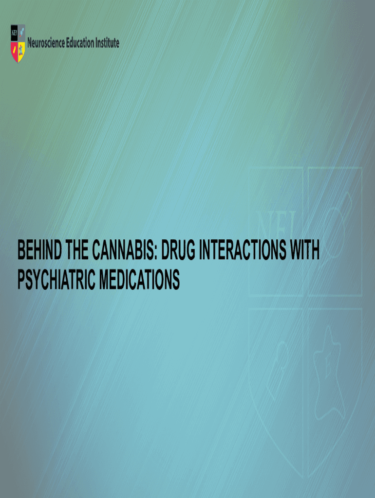 BEHIND THE CANNABIS: DRUG INTERACTIONS WITH PSYCHIATRIC MEDICATIONSLearning Objectives Discuss the most appropriate and effective way to communicate with patients about the use of cannabis Examine
