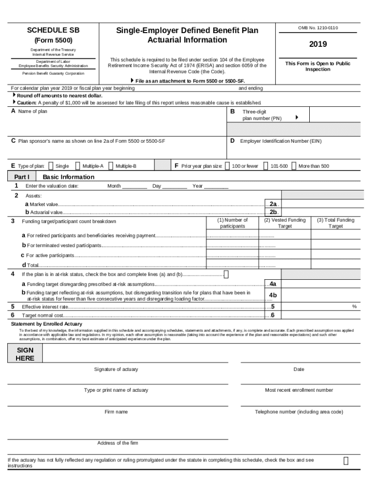 Get the free 2019 Schedule SB ( 2019 Schedule SB (Form 5500) Single Employer Defined Ben