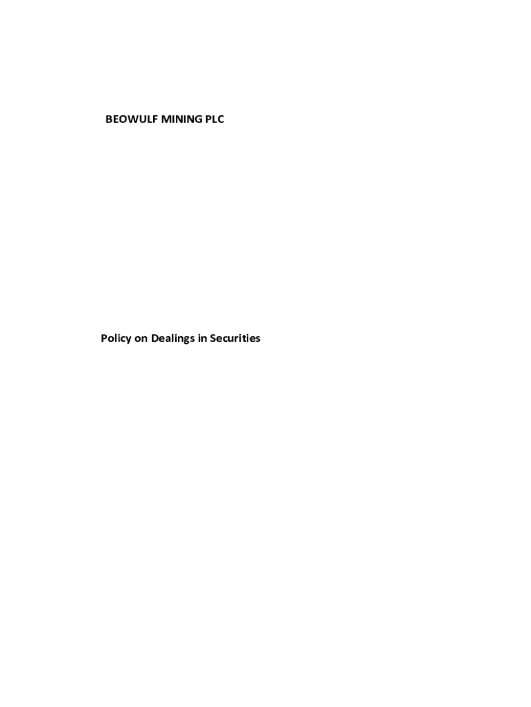 BEOWULF MINING Policy on Dealings in SecuritiesCONTENTSTitlePagePurpose of this Policy1Administration11. Introduction22. Definitions23. Dealing by Restricted Persons54. Clearance to deal and notification
