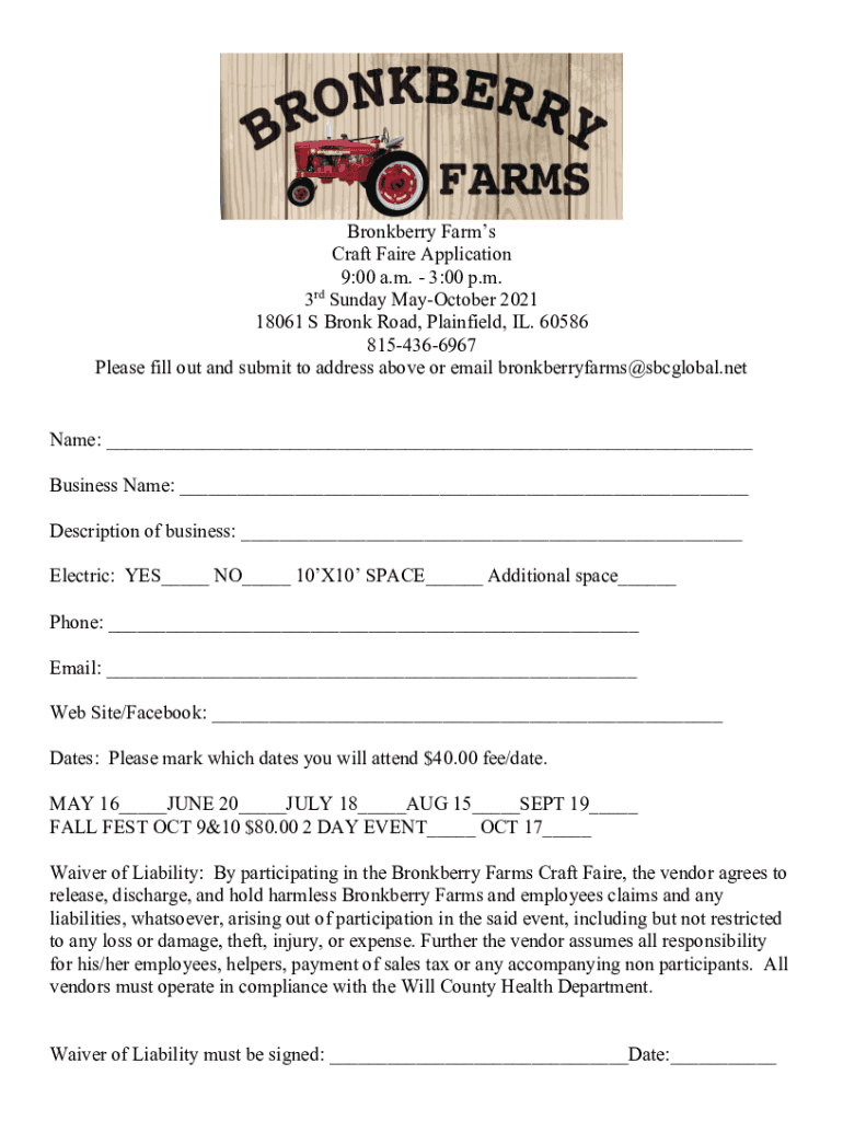 Visit the official Bronkberry Farms website to find the registration form for the craft faire.
