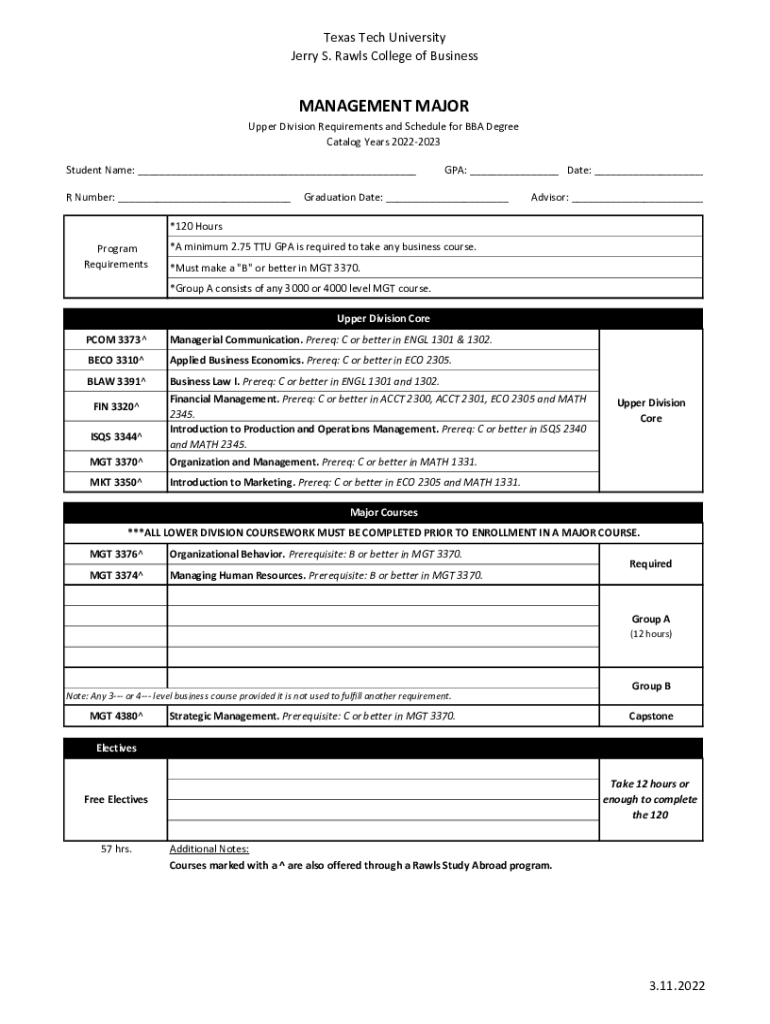 Get the free Bachelor of Business Administration in Management...