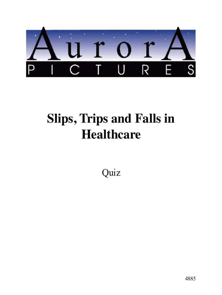 ! Slips, Trips and Falls in Healthcare Quiz4885KEY 1. T 2. D 3. T 4. F 5. T 6. T 7. An 8. T 9. T 10. Clips, Trips & Falls Employee Edamame: ___ Date:___1. Slips, trips & falls are preventable. True