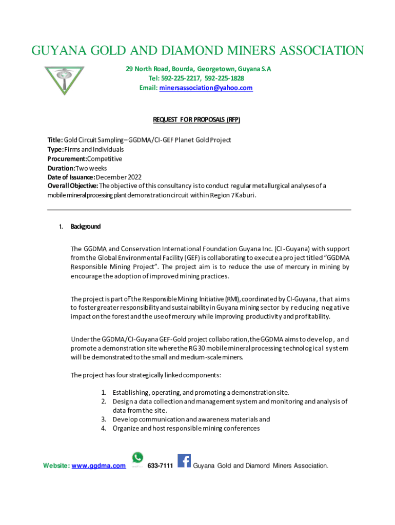 GUYANA GOLD AND DIAMOND MINERS ASSOCIATION 29 North Road, Board, Georgetown, Guyana S. A Tel: 5922252217, 5922251828 Email: minersassociation@yahoo.comREQUEST FOR PROPOSALS (RFP) Title: Gold Circuit