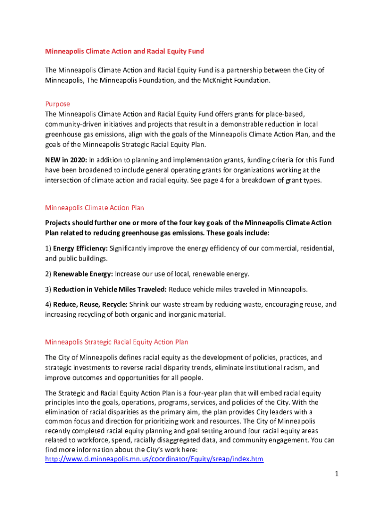 Minneapolis Climate Action and Racial Equity Fund The Minneapolis Climate Action and Racial Equity Fund is a partnership between the City of Minneapolis, The Minneapolis Foundation, and the McKnight