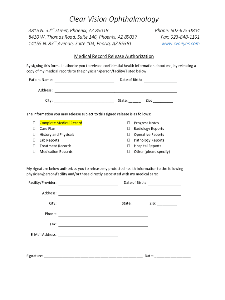 Get the free Clear Vision Ophthalmology Pc - Eye Clinic in Phoenix, AZ