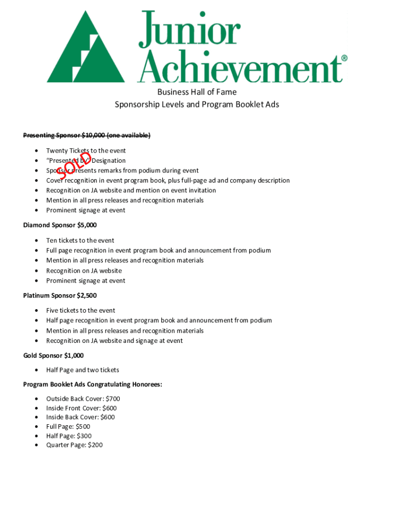 Get the free Business Hall of Fame Sponsorship Levels and Program ...