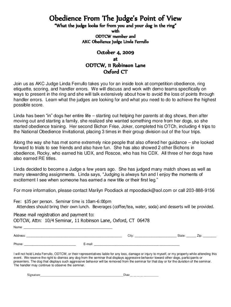 Edit your obedience from form judges form online