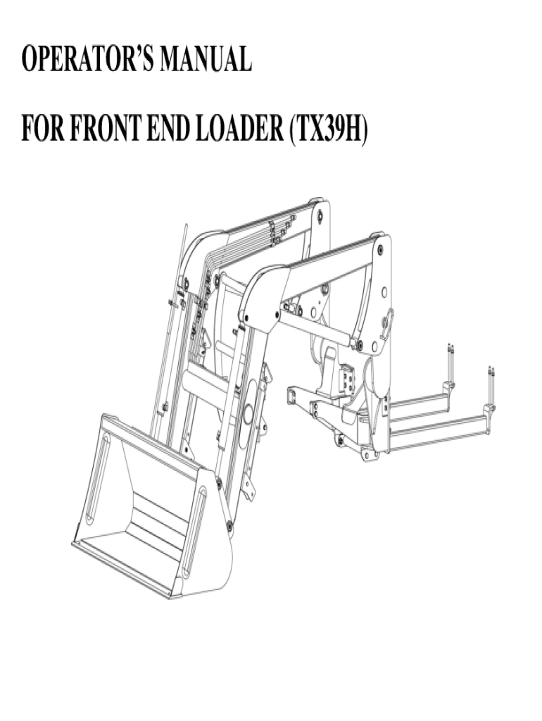OPERATORS MANUAL FOR FRONT END LOADER (TX39H)WARRANTY CONDITIONS Warranty Coverage : TOM Tractor Division, herein referred to as TOM, undertakes to replace or repair any part of a TOM loader where