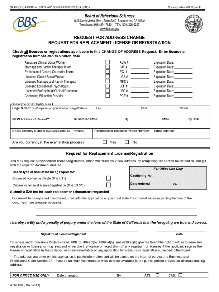Get the free Bbs Address Change Form. California Department of Consumer Affairs