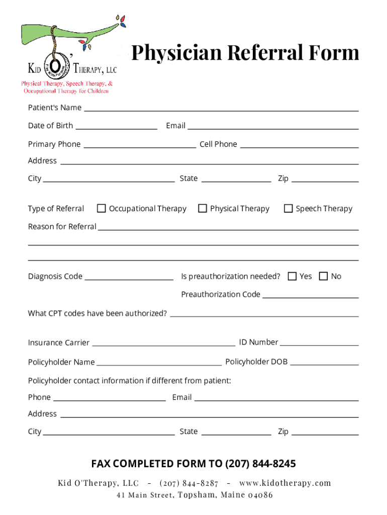 Kind oformrapy physician referral can be filled out by providing information about the child's medical history, current condition, and reason for referral.