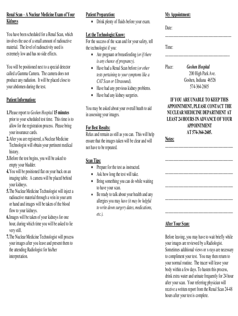 To fill out a renal scan nuclear medicine, patients need to follow the instructions given by the healthcare provider and the imaging facility.