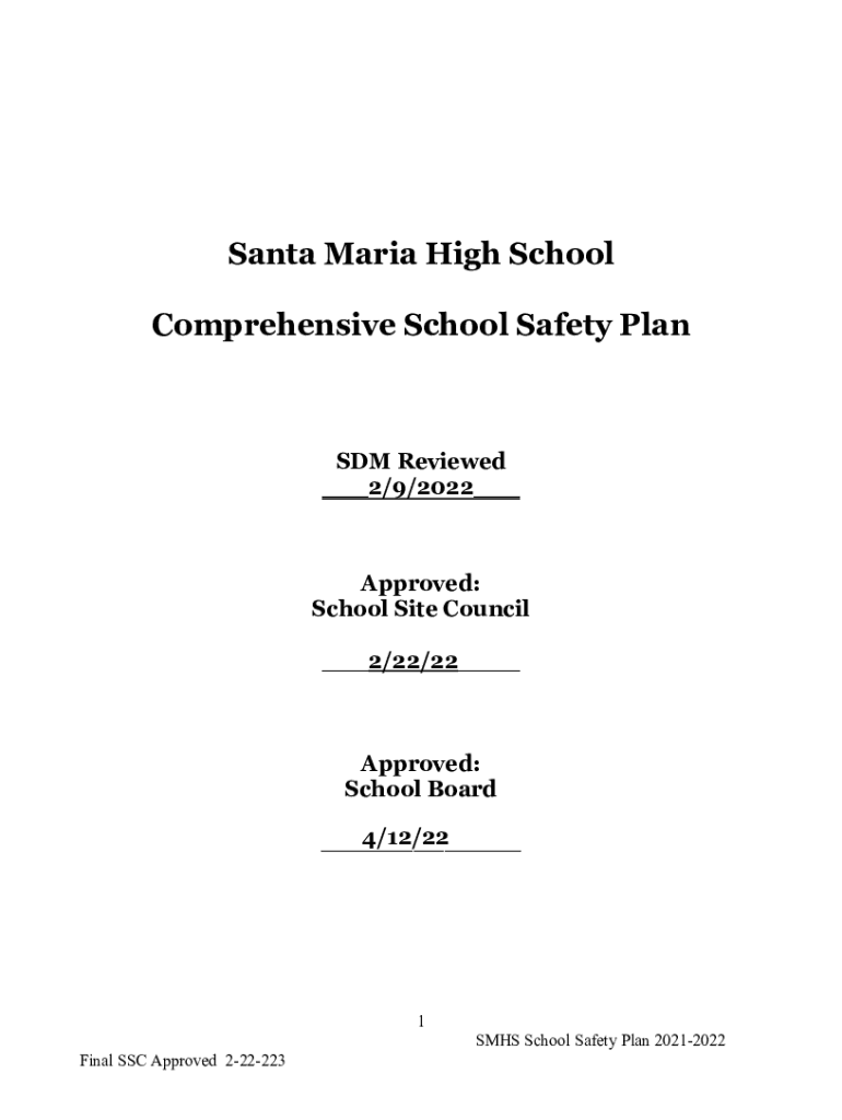 Santa Maria High School Comprehensive School Safety Plan SDM Reviewed ___2/9/2022___Approved: School Site Council ___2/22/22___Approved: School Board 4/12/22 ___1 Final SSC Approved 222223SMHS School