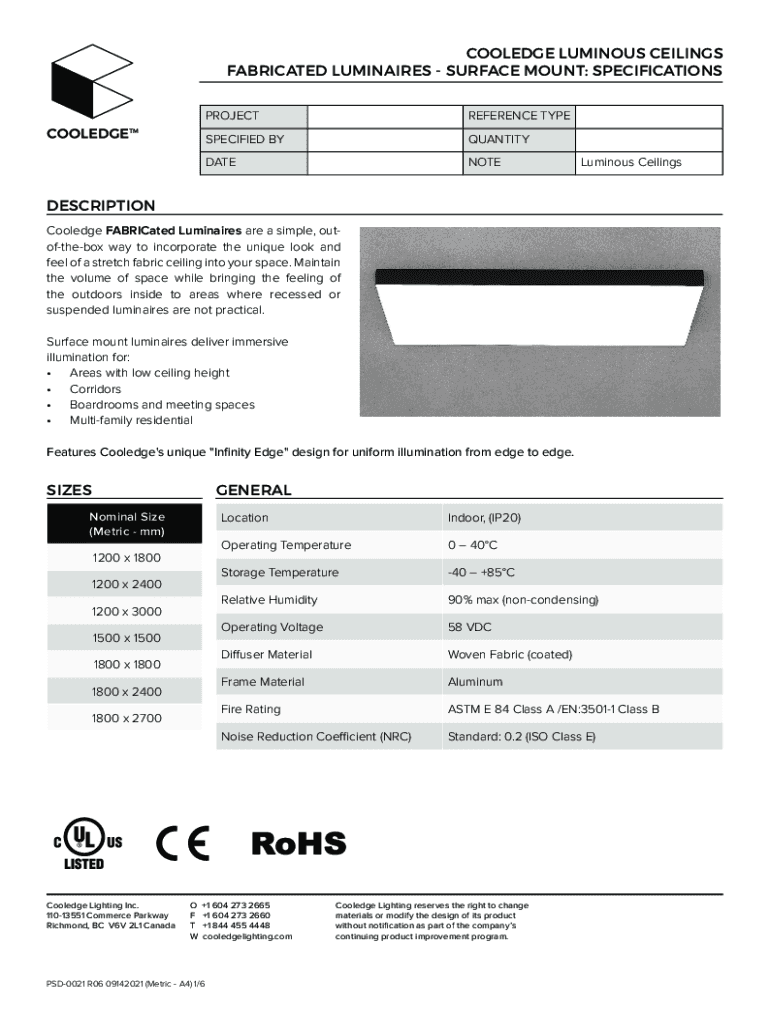 PROJECTREFERENCE PRESPECIFIED BYQUANTITYDATENOTELuminous CeilingsDESCRIPTION