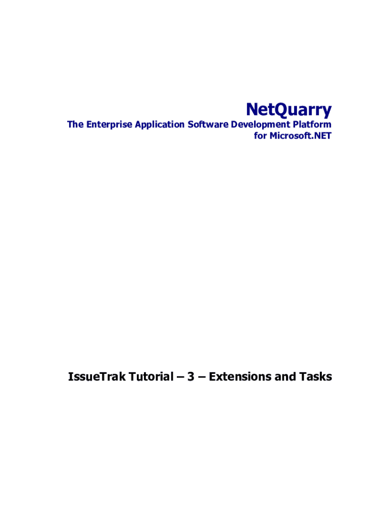 NetQuarryThe Enterprise Application Software Development Platform for Microsoft.NETIssueTrak Tutorial 3 Extensions and Marketable of Contents Table of Contents .........................................................................
