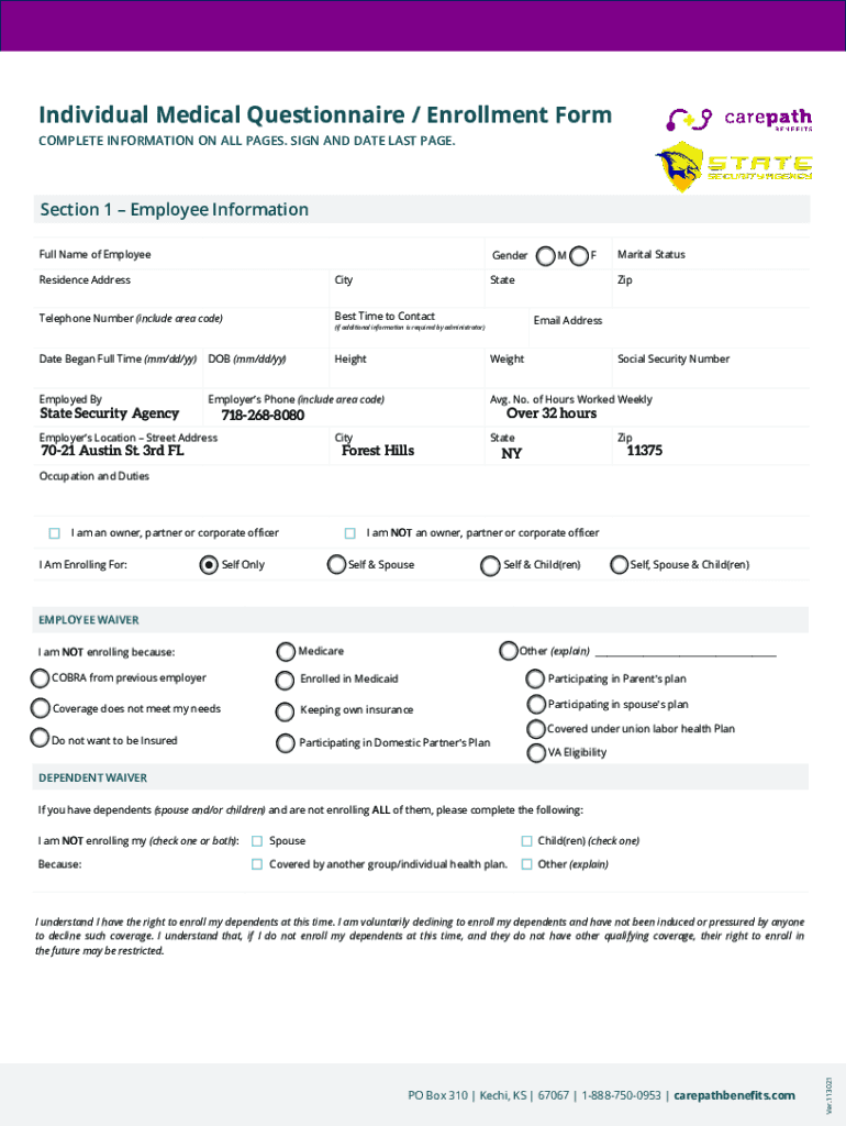 Individuals who are enrolling in a health insurance plan are required to file individual medical questionnaire enrollment.