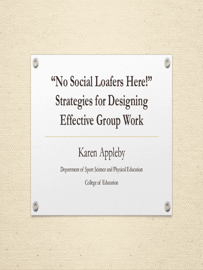 Get the free No Social Loafers Here! Strategies for Designing Effective Class Group Work