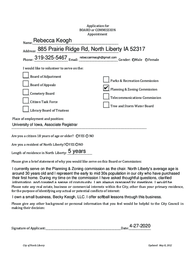 How to fill out north liberty city council