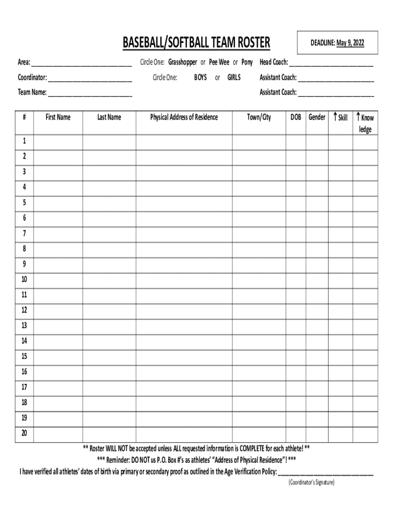 BASEBALL/SOFTBALL TEAM ROSTER