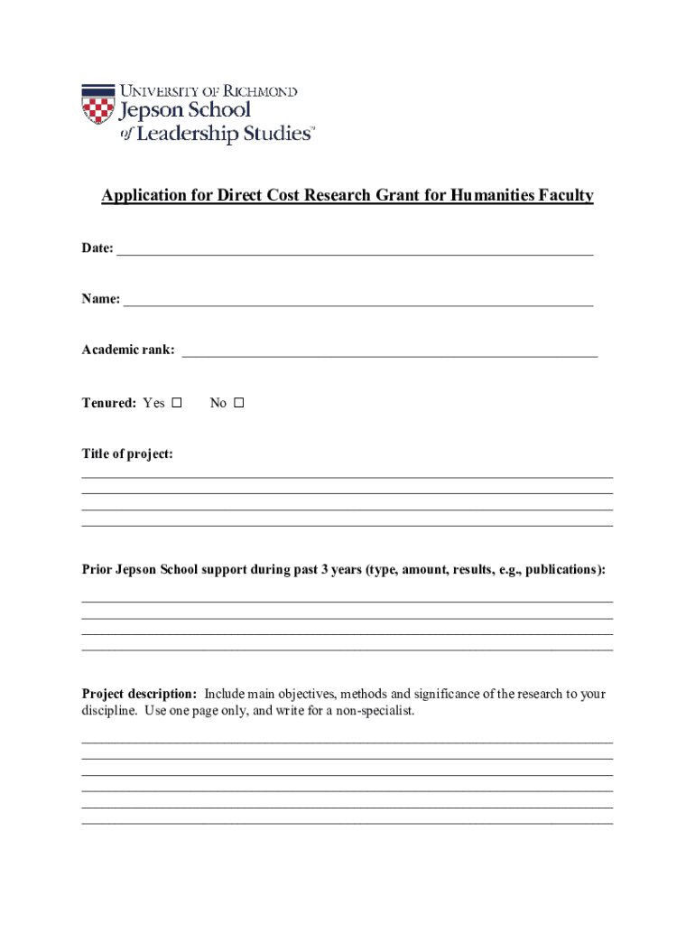 Application for Direct Cost Research Grant for Humanities Faculty Date: ___ Name: ___ Academic rank: ___ Tenured: Yes No Title of project: ___ ___ ___ ___ Prior Epson School support during past 3