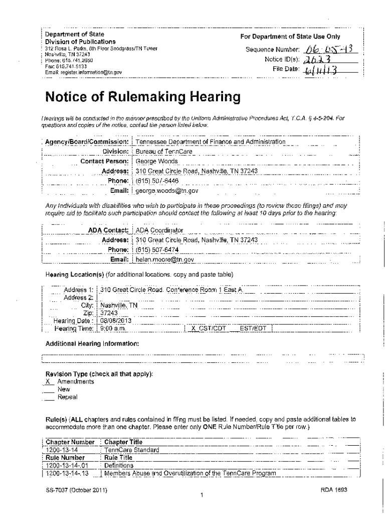 Department of State Division of Publications Department of State Use Only312 Rosa L. Parks, 8th Floor Snodgrass Tower Nashville, TN 37243 Phone: 615.741.2650 Fax: 615.741.5133 Email: register.information@tn.govSequence