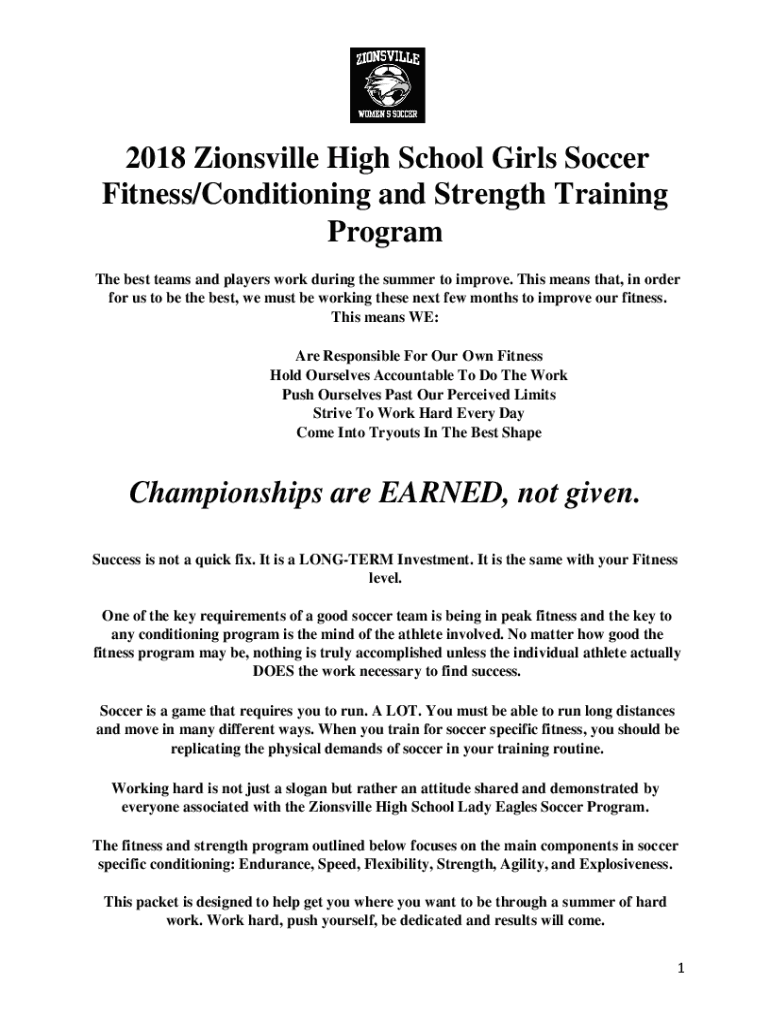 2018 Zionsville High School Girls Soccer Fitness/Conditioning and Strength Training Program The best teams and players work during the summer to improve. This means that, in order for us to be the