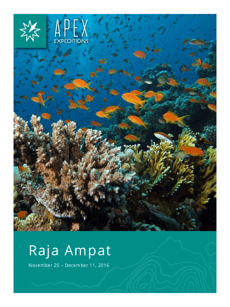 Raja Am pat November 25 December 11, 2016This image and cover: Giovanna FasanelliExpedition Overview To visit the Indonesian islands is an extraordinary experience, both above and below water. For