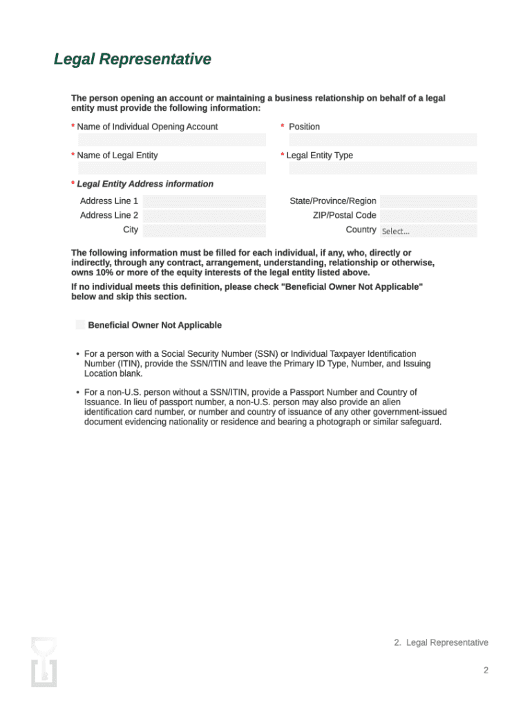 Beneficial Owner(s) (10% or More) and Key Controller CertificationBeneficial Owner(s) above 10% Federal regulation requires certain financial institutions to obtain, verify, and record information