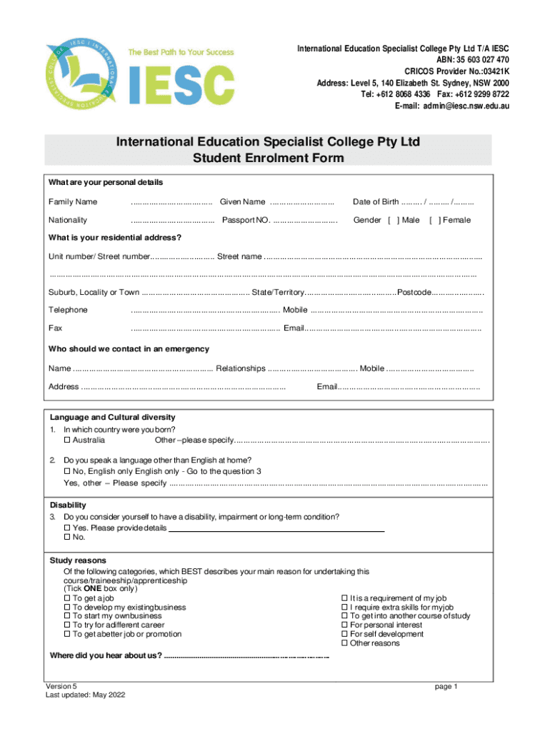 International Education Specialist College Pty Ltd T/A IEC ABN: 35 603 027 470 CRICKS Provider No.:03421K Address: Level 5, 140 Elizabeth St. Sydney, NSW 2000 Tel: +612 8068 4336 Fax: +612 9299 8722