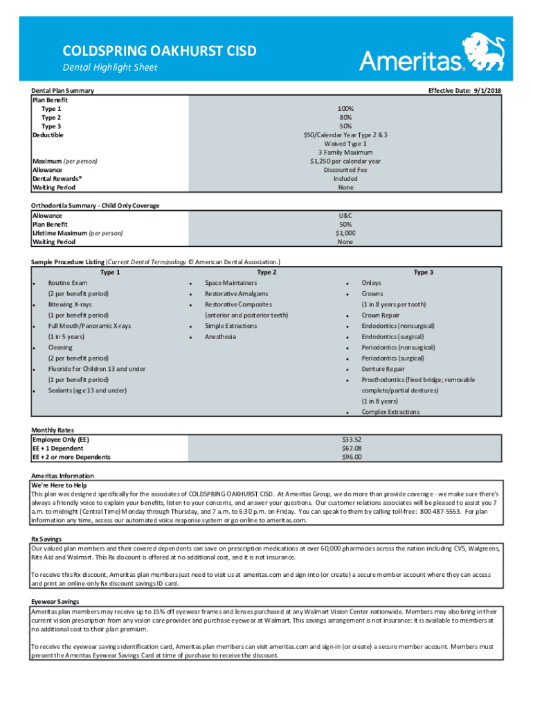 OFFSPRING PANKHURST CSD Dental Highlight Sheet Dental Plan Summary Plan Benefit Type 1 Type 2 Type 3 Deductible Maximum (per person) Allowance Dental Rewards Waiting Period Orthodontia Summary Child