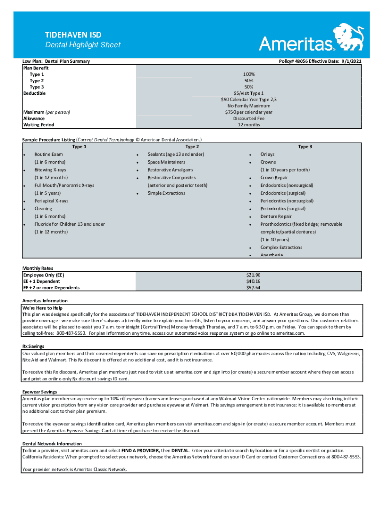 Get the free Dental Plan Highlights