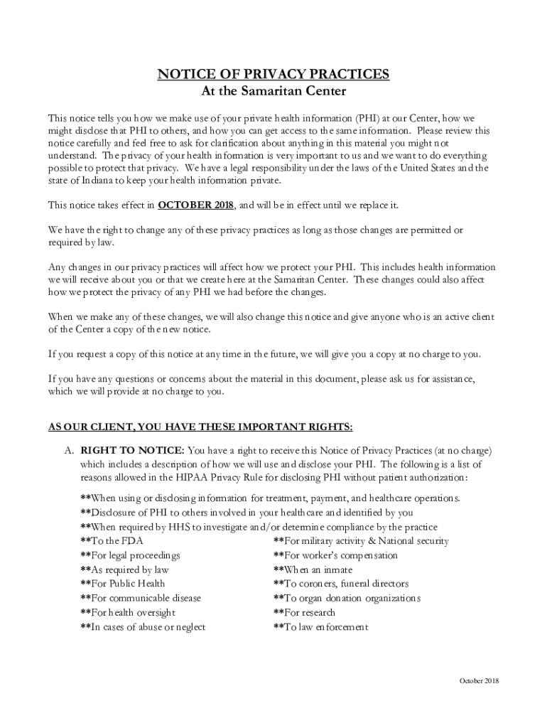 Get the free NOTICE OF PRIVACY PRACTICES At the Samaritan Center
