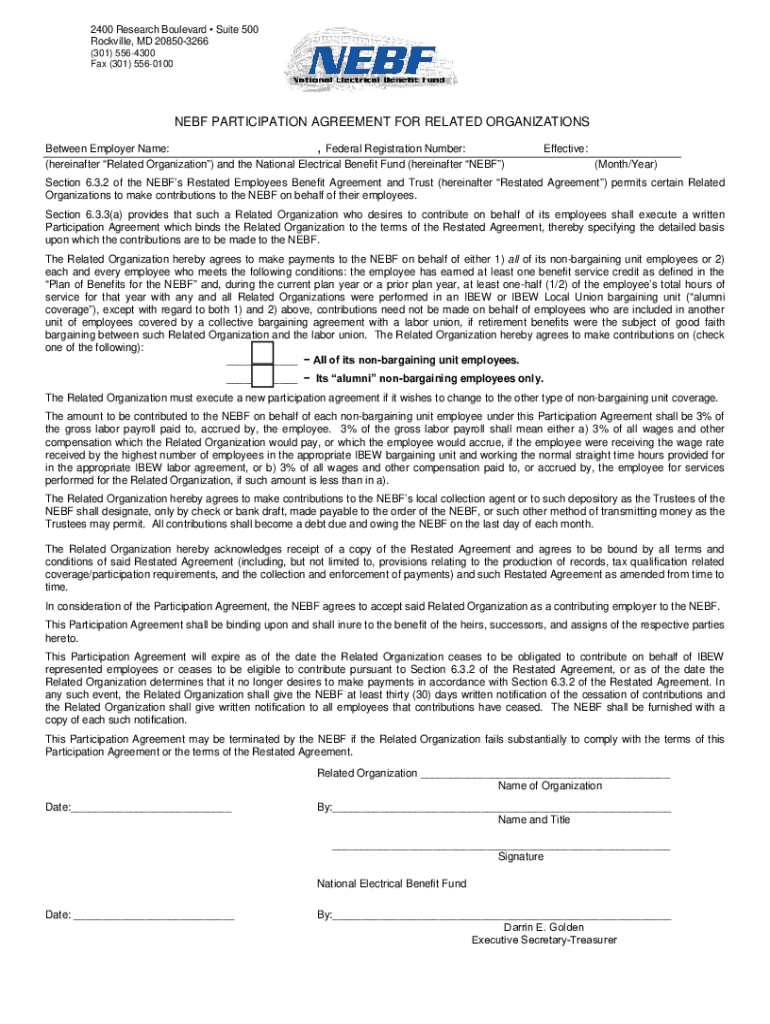 Participation Agreement Instructions Complete the Participation Agreements (2 copies). Select the type of Participation Agreement you wish to enter into (either All Alumni). Have an authorized representative