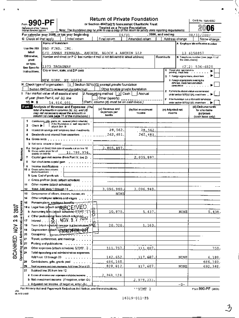 Return of Private Foundation990 P FFormDepartment of the TreasuryInternal Revenue Service OMB No 15450052or Section 4947(a)(1) Nonexempt Charitable Trust