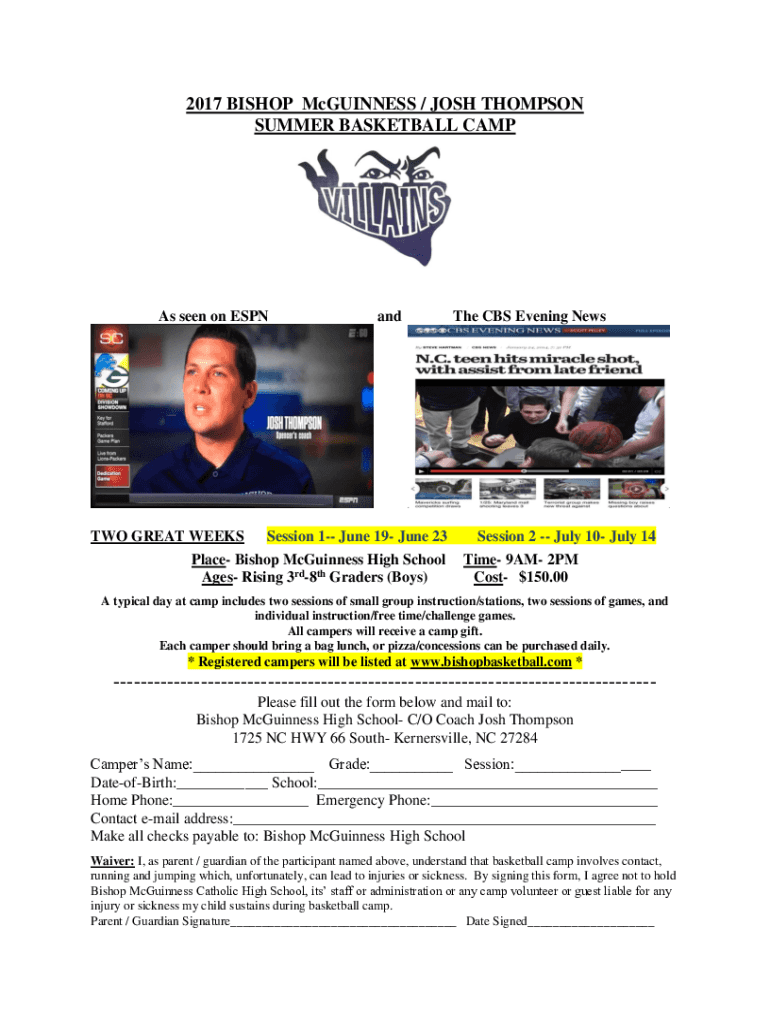 SUMMER BASKETBALL Campus seen on ESPN GREAT WEEKSandSession 1 June 19 June 23Place Bishop Guinness High School