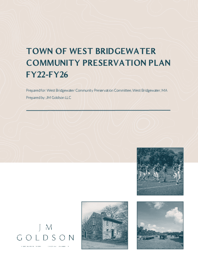 WEST BRIDGEWATER COMMUNITY PRESERVATION PLAN FY2125 (DRAFT)TOWN OF WEST BRIDGEWATER COMMUNITY PRESERVATION PLAN FY22FY26 Prepared for: West Bridgewater Community Preservation Committee, West Bridgewater,