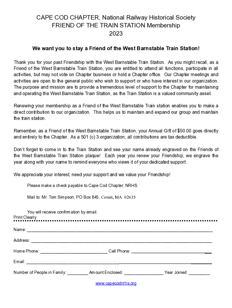 We want you to stay a Friend of the West Barnstable Train Station! Thank you for your past Friendship with the West Barnstable Train Station. As you might recall, as a Friend of the West Barnstable