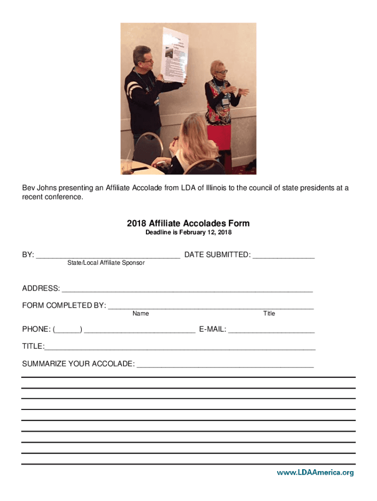 October 20, 2017, Dear State and Local Affiliates, It is that time again to look back and take pride in something your affiliate has undertaken during the past year. Your Affiliate Support/Membership