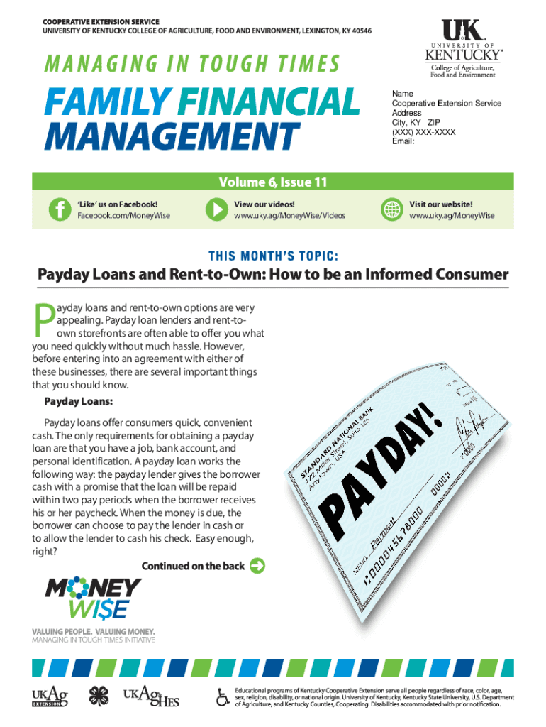 Name Cooperative Extension Service Address City, KY ZIP (XXX) XXXIX Email:Volume 6, Issue 11 Like us on Facebook! Facebook.com/MoneyWiseView our videos! www.uky.ag/MoneyWise/VideosVisit our website!