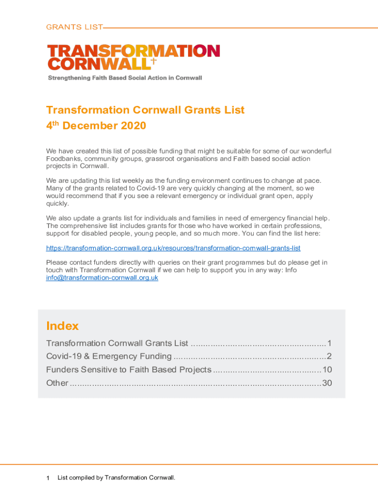 We have created this list of possible funding that might be suitable for some of our wonderful