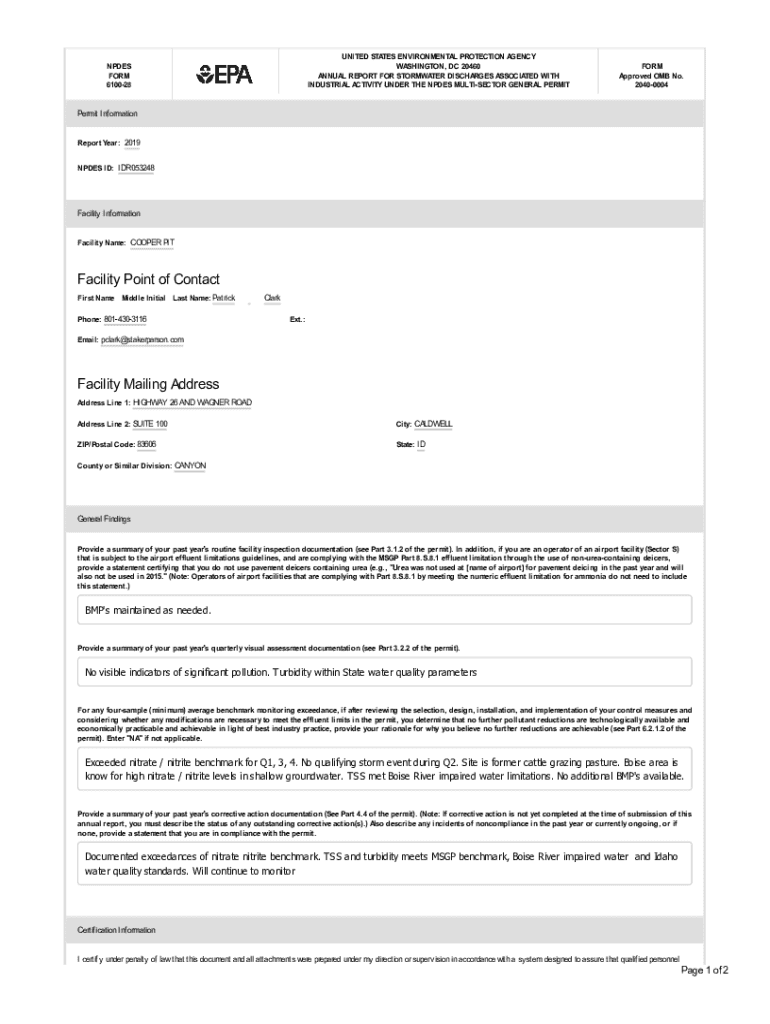 ANNUAL REPORT FOR STORMWATER DISCHARGES ASSOCIATED WITH