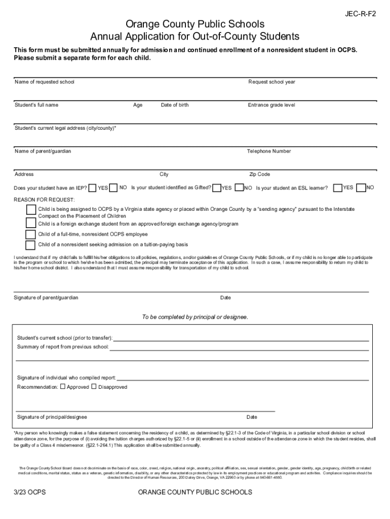 Get the free Orange County Public Schools Annual Application for Out-of ...