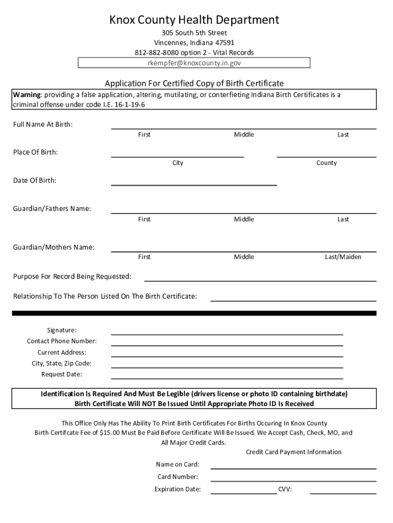 rkempfer@knoxcounty.in.govApplication For Certified Copy of Birth CertificateWarning: providing