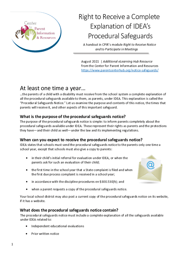 Right to Receive a Complete Explanation of Ideas Procedural Safeguards A handout in Cars module Right to Receive Notice and to Participate in Meetings August 2021 | Additional e-learning Hub Resource