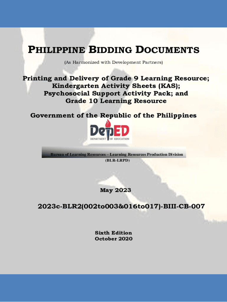 (As Harmonized with Development Partners)Printing and Delivery of Grade 9 Learning Resource;