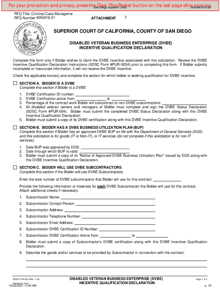 San Diego Superior Courted MA001621Solicitation MA001621Criminal Data Exchange Project Web Developed Designation: Publican Diego Superior Court10/22/2021 11:49 AMp. 1San Diego Superior Courted MA001621Bid