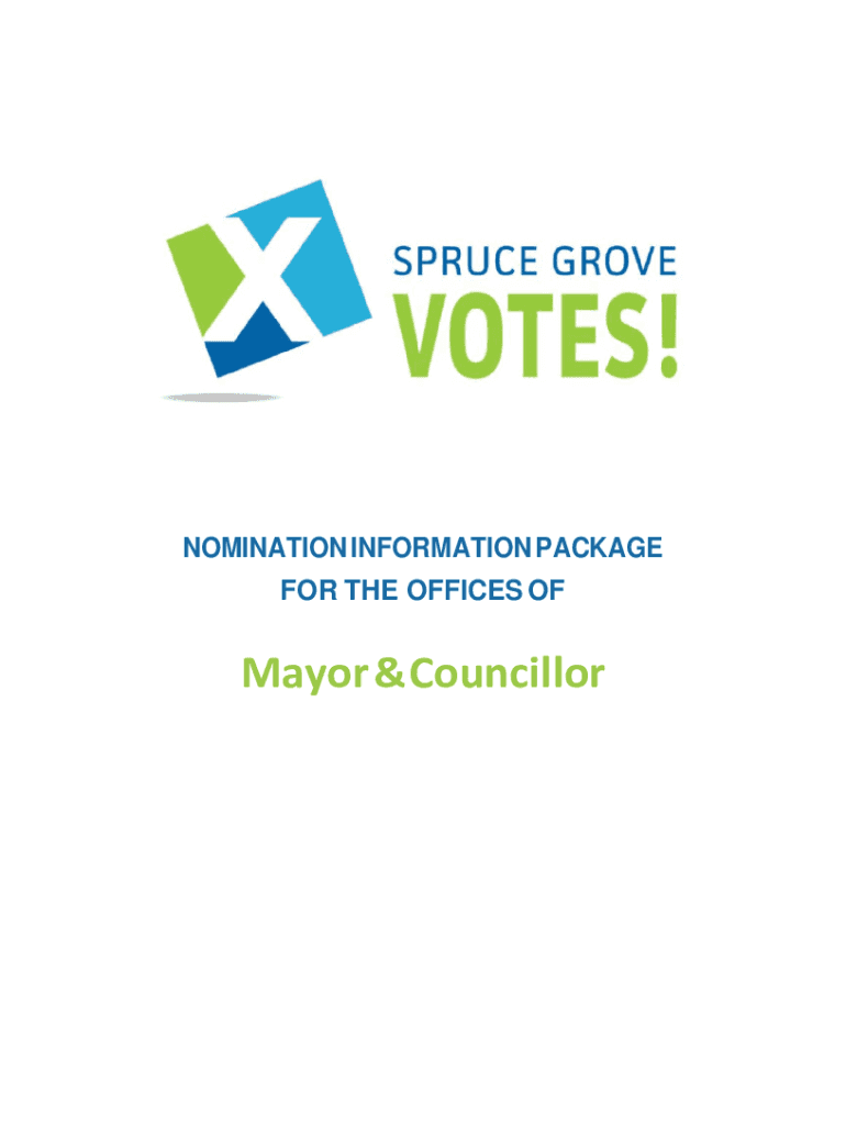 NOMINATION INFORMATION PACKAGE FOR THE OFFICES Mayor & CouncillorGENERAL INFORMATION City of Spruce Grove 2021 Electricity of Spruce Groves booklet is published as a service to prospective candidates