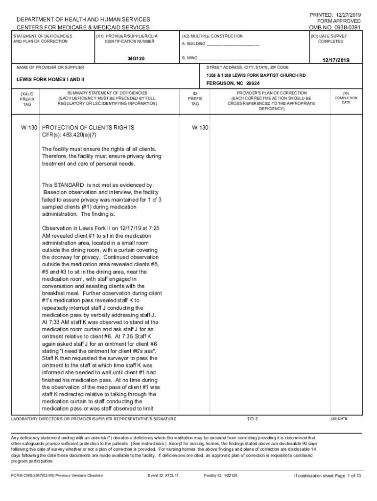 PRINTED: 12/27/2019 FORM APPROVEDDEPARTMENT OF HEALTH AND HUMAN SERVICES CENTERS FOR MEDICARE & MEDICAID SERVICES STATEMENT OF DEFICIENCIES AND PLAN OF CORRECTION(X1) PROVIDER/SUPPLIER/CIA IDENTIFICATION