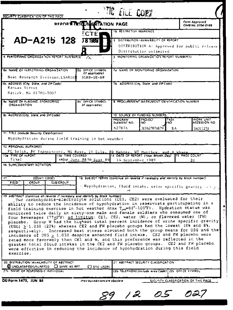 SECURITY CLASSIFICATION OF THIS PAGECOPatiLLRFPnR ETON CTE128 * AADA215 A 1 83Form Approved Oman O70. U0188PAGE Ill RESTRICTIVE MARKINGS1DISTRIBUTION, AVAIL AB\'CITY OF REPORT DISTRIBUTION3. Distribution
